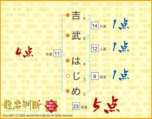 吉武はじめさんの総運は23画の5点!