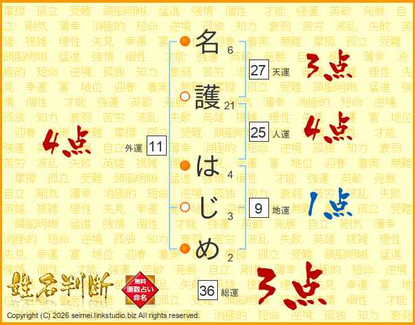名護はじめさんの総運は36画の3点!