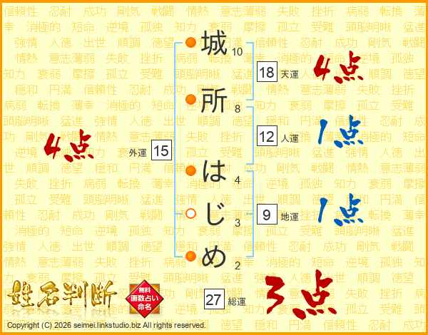 城所はじめさんの総運は27画の3点!