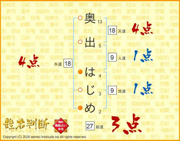奥出はじめさんの外運は18画の4点!