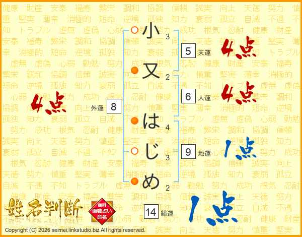 小又はじめさんの総運は14画の1点!