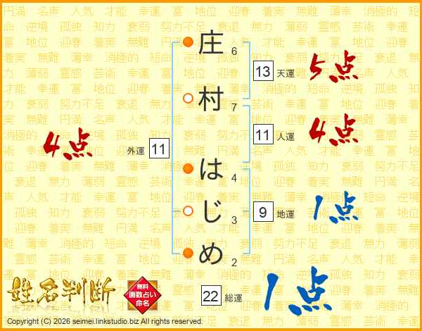 庄村はじめさんの総運は22画の1点!
