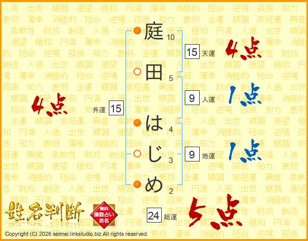 庭(10画)田(5画) は(4画)じ(3画)め(2画)
