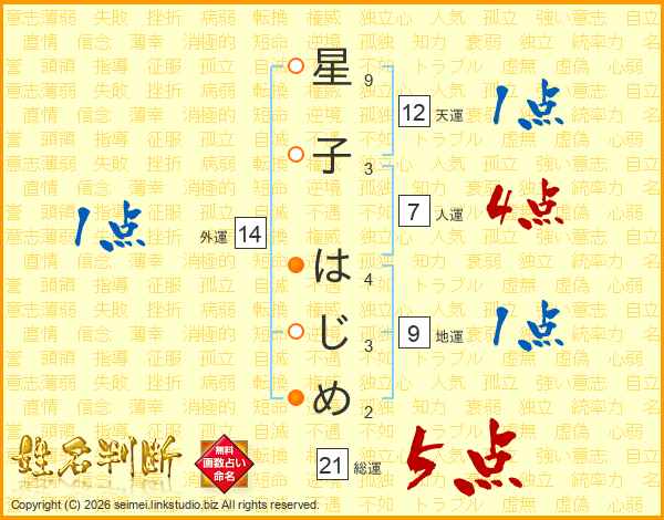 星子はじめさんの総運は21画の5点!