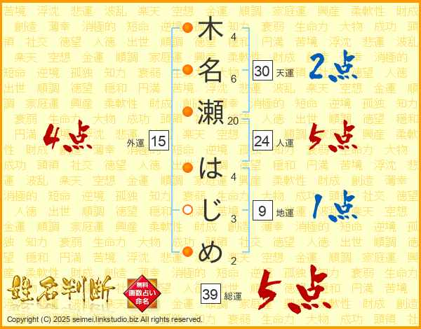 木名瀬はじめさんの総運は39画の5点!