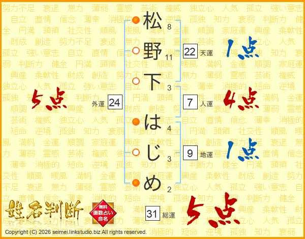 松野下はじめさんの総運は31画の5点!
