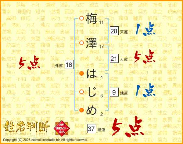 梅澤はじめさんの総運は37画の5点!