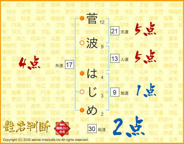 菅波はじめさんの総運は30画の2点!