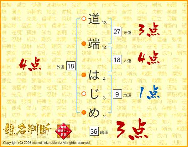 道端はじめさんの外運は18画の4点!