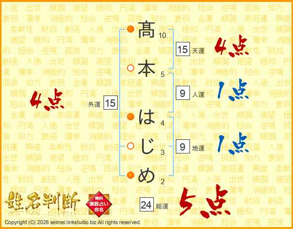 髙(10画)本(5画) は(4画)じ(3画)め(2画)