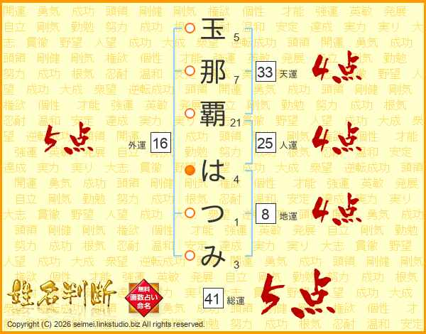 玉那覇はつみさんの外運は16画の5点!