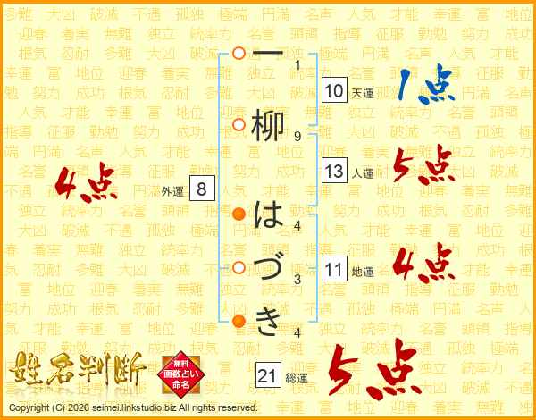 一柳はづきさんの総運は21画の5点!