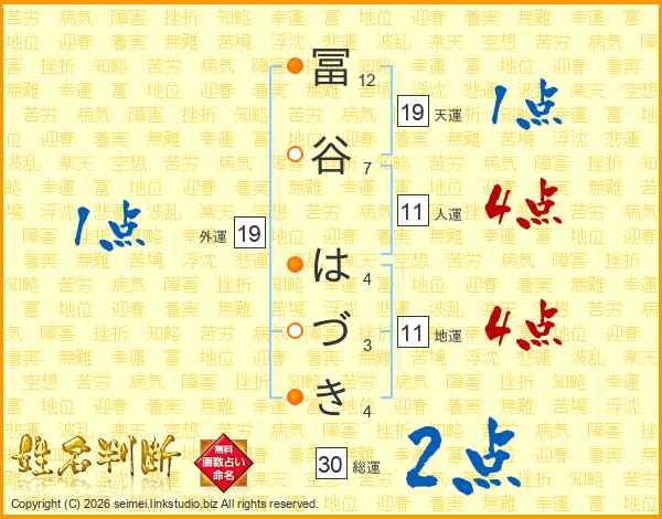 冨谷はづきさんの天運は19画の1点!