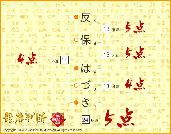 反保はづきさんの総運は24画の5点!
