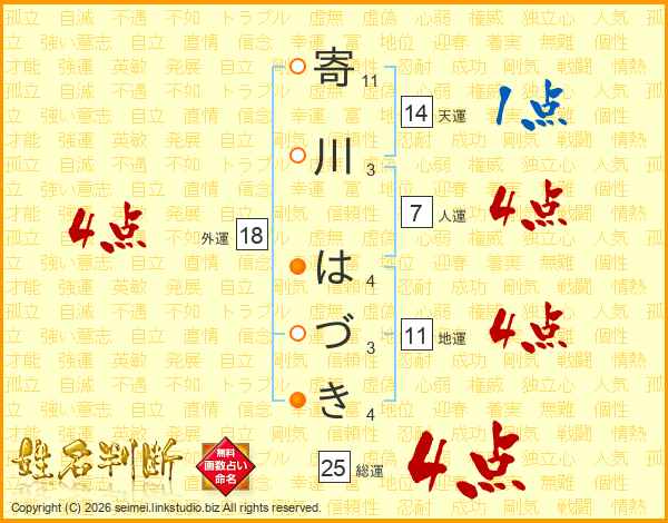 寄川はづきさんの総運は25画の4点!