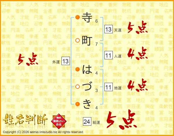 寺町はづきさんの総運は24画の5点!