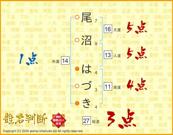 尾沼はづきさんの外運は14画の1点!