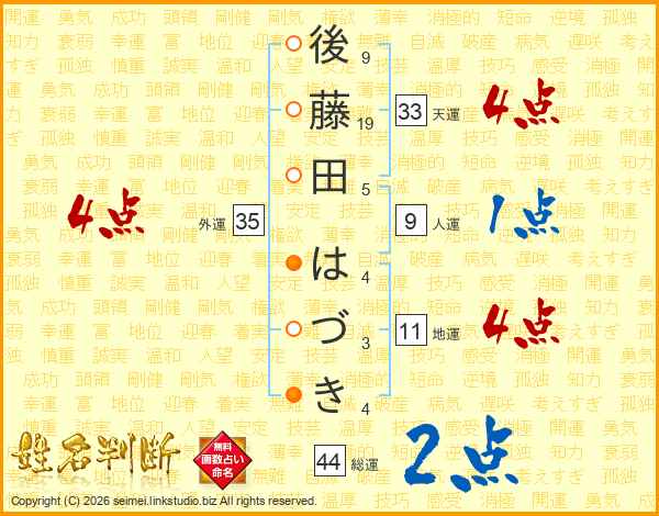後藤田はづきさんの総運は44画の2点!