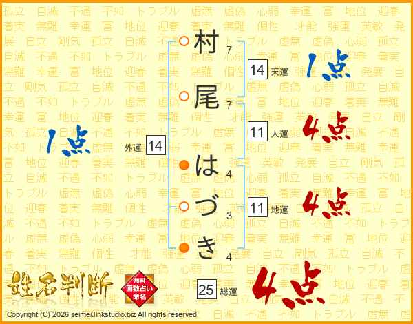 村尾はづきさんの総運は25画の4点!