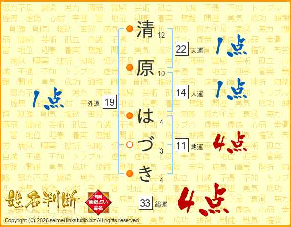 清原はづきさんの総運は33画の4点!