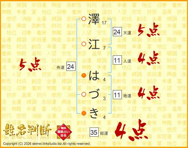 澤江はづきさんの総運は35画の4点!