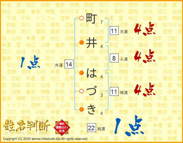 町井はづきさんの総運は22画の1点!