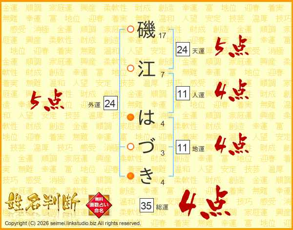 磯江はづきさんの総運は35画の4点!
