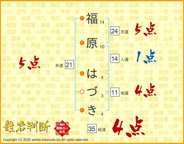 福原はづきさんの総運は35画の4点!