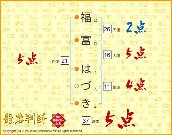 福富はづきさんの総運は37画の5点!