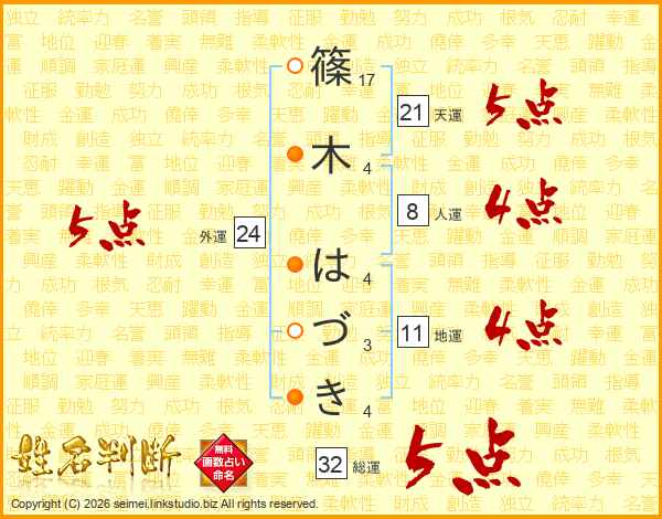 篠木はづきさんの天運は21画の5点!