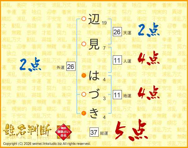 辺(19画)見(7画) は(4画)づ(3画)き(4画)
