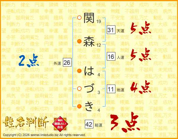 関森はづきさんの外運は26画の2点!