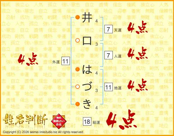 井(4画)口(3画) は(4画)づ(3画)き(4画)