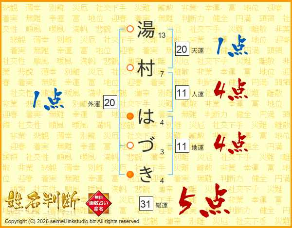 湯村はづきさんの総運は31画の5点!