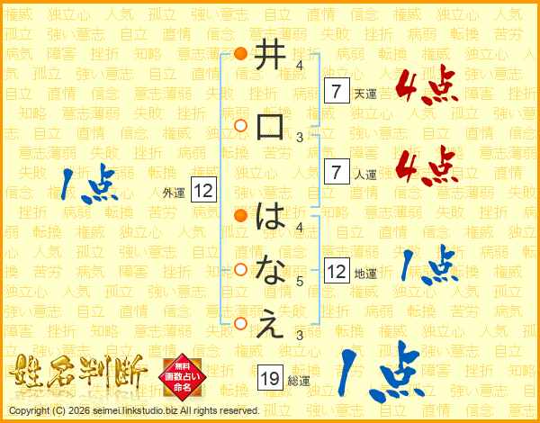 井(4画)口(3画) は(4画)な(5画)え(3画)
