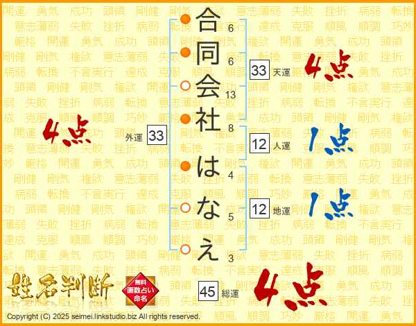 合(6画)同(6画)会(13画)社(8画) は(4画)な(5画)え(3画)