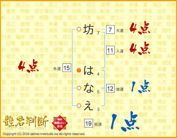 坊はなえさんの天運は7画の4点!