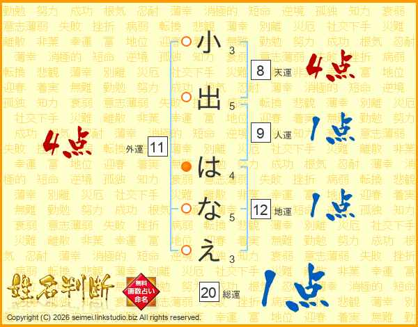 小出はなえさんの総運は20画の1点!