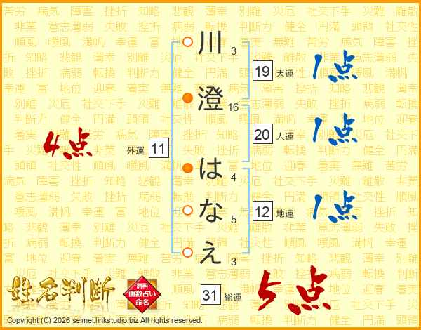 川澄はなえさんの総運は31画の5点!