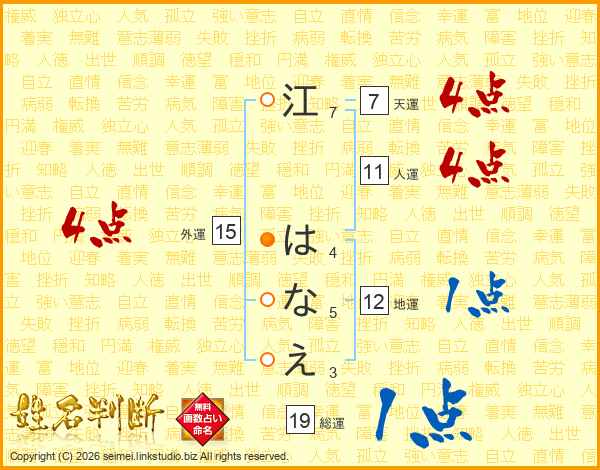江はなえさんの総運は19画の1点!
