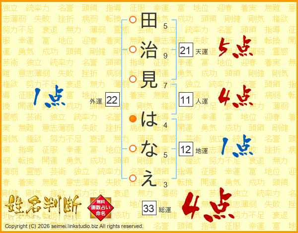 田治見はなえさんの総運は33画の4点!