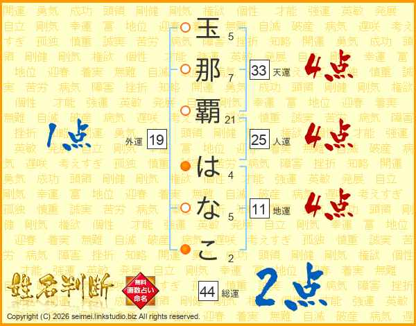 玉那覇はなこさんの総運は44画の2点!
