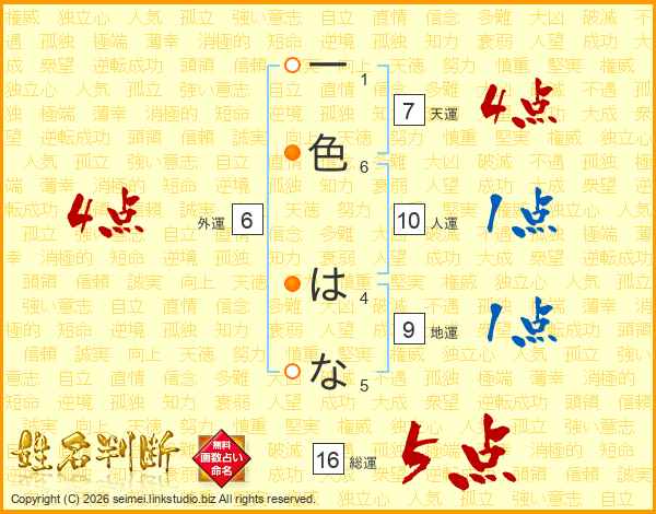 一色はなさんの総運は16画の5点!