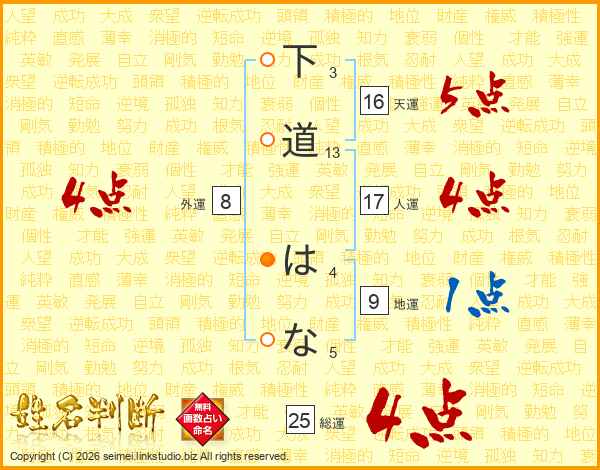 下道はなさんの総運は25画の4点!