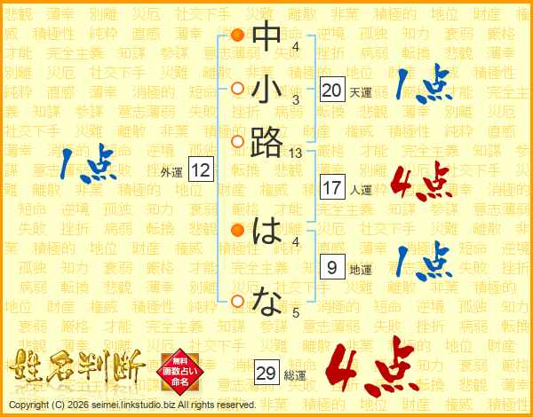 中(4画)小(3画)路(13画) は(4画)な(5画)