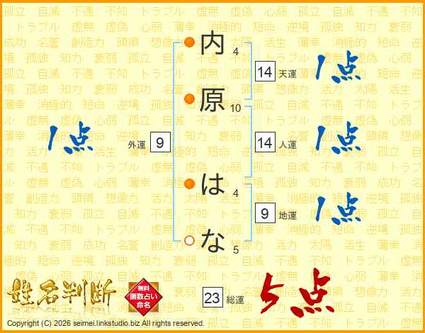 内原はなさんの総運は23画の5点!