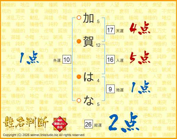 加賀はなさんの総運は26画の2点
