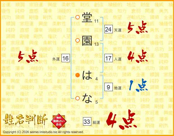 堂園はなさんの総運は33画の4点!