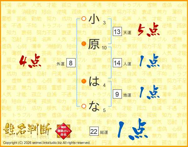 小原はなさんの総運は22画の1点!