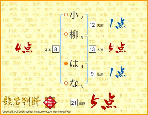 小柳はなさんの総運は21画の5点!